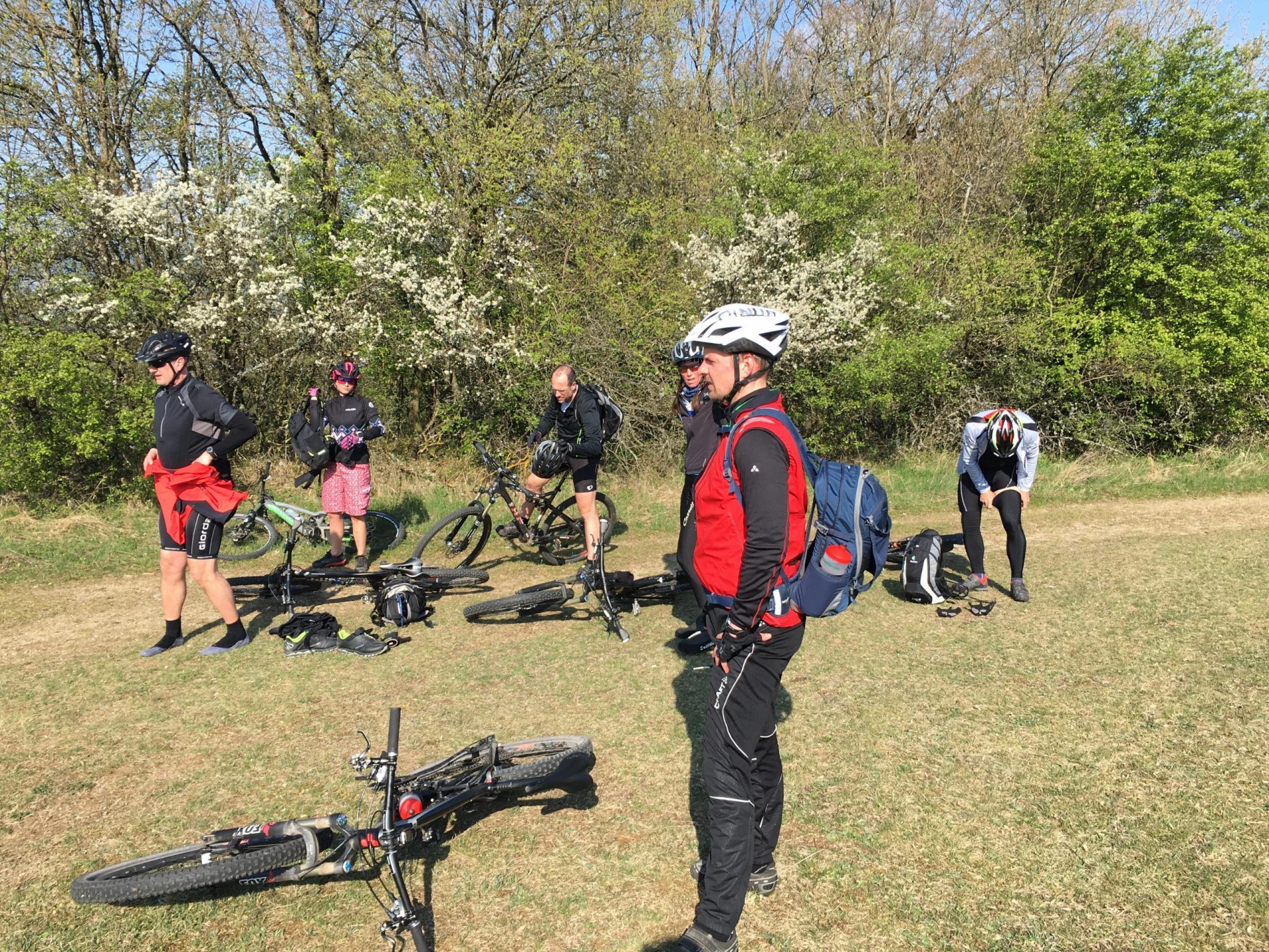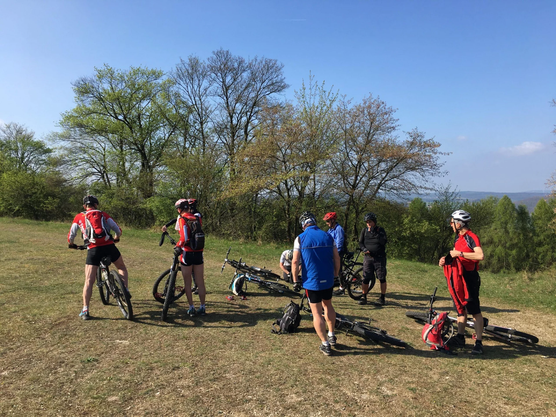 Am vergangenen Freitag fand unsere traditionelle Karfreitagstour statt. Diese nutzten wir auch gleich zur offiziellen Saisoneröffnung. Los ging es mit der Bahn nach Schlüchtern. Von dort aus starteten wir mit einer grandiosen Anzahl von 20 Teilnehmern gemeinsam auf dem Spessartbogen bis Marjoß, dann ging es ein kurzes Stück auf dem Radweg in Richtung Mernes weiter. Anschließend hoch zum Golfplatz Alsberg und weiter auf dem Eselsweg bis oberhalb von Bad Orb.