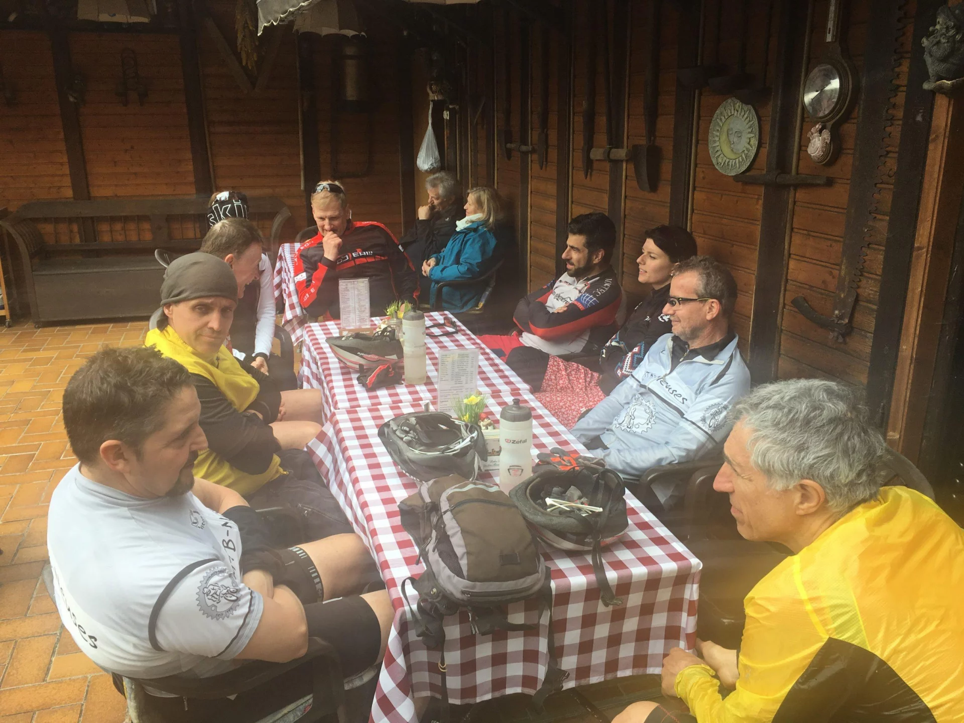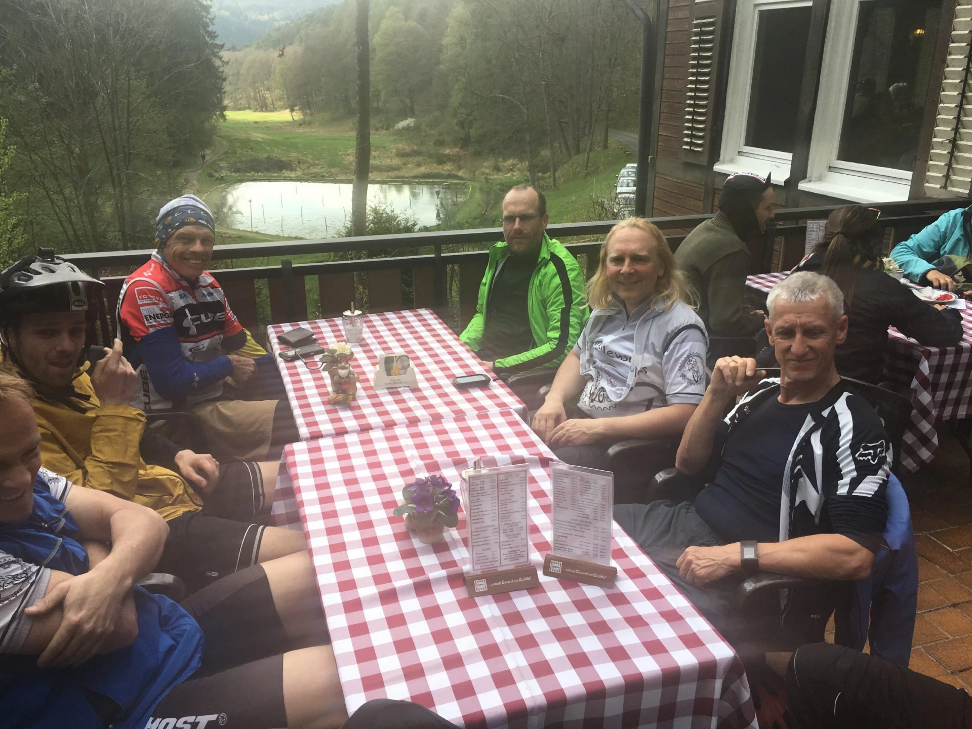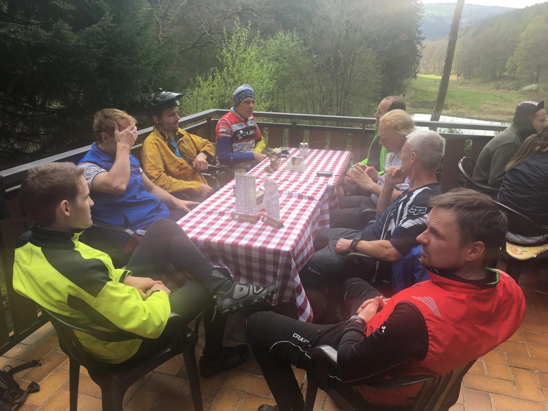 Dort sind wir auf dem neu angelegten Flowtrail runter zur Haselruh gefahren. Nach einer ordentlichen Stärkung in der Haselruh mit Erdbeer-, Käsekuchen und Kaffee ging es danach wieder zurück zum Hufeisen.